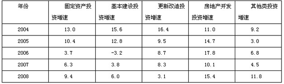 2004年—2008年某省各类投资增长变化情况表(%)