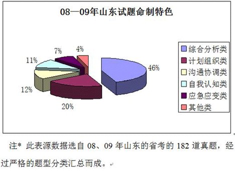 就题型而言, 山东公务员面试面试基本上是以自我认知、计划组织、沟通协调型和综合分析类面试题为基本的考察题型(详见附图)。但值得考生尤为注意的是,综合分析类面试题在近年来出现了分量不断加重的命题趋势,考生在备考时一定要将此类题作为重点备考题型予以充分地准备。