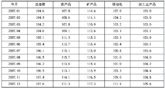 2007年全年四川省企业商品价格指数(以上年同月为100)
