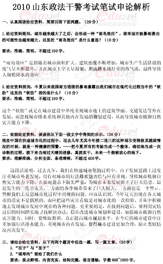 2010年山东政法干警考试《申论》真题解析