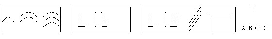 解答:正确答案为B。因为只有B能使两套图形具有相似性,仅仅元素不同,一个是实的曲线,一个是虚的直线,但两组图形中元素的排列规律完全相同。