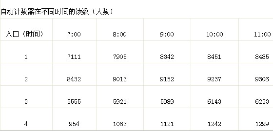 ① 从早上7:00到11:00通过入口1进入博物馆的参观人数是: