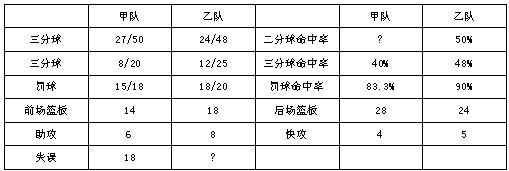 137.甲乙两队的二分球与三分球的平均命中率哪队最高?( )。