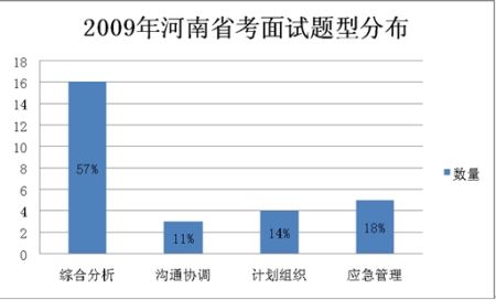 根据对河南省2009年公务员招考统一面试的真题进行分析之后,可得出题目类型分布如下: