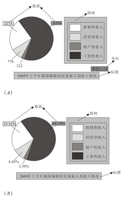 (2)数据——图形中的统计数值,包括计量单位,图a中表示的是绝对量,图b中表示的是相对量;