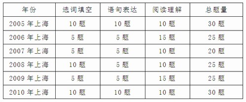 2011年上海市公务员考试大纲已经发布,与2010年、2009年大纲相比,言语理解与表达模块题型没有变化,仍然是选词填空、语句表达和阅读理解三个部分。然而言语理解与表达模块存在一个无法忽视的变化,大纲中选用的例题都是国家公务员考试大纲例题或国考真题,本部分国考化的倾向明显。 $lesson$