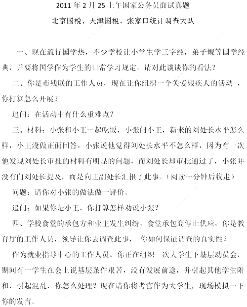 当前位置: 首页 > 国家公务员 > 国家公务员历年试题 > 2011国考面试真题:北京天津国税等2月25日上午
