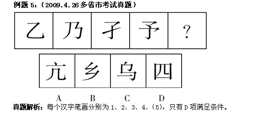 1.考查点:线条是图形最主要的构成要素,也是涉及考点最多的一个要素。图形推理中主要从直线和曲线两个方面来考查。此外,还有一个与线条相关的概念――笔画,也是重要的考查点。