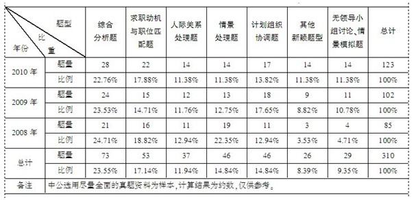 无领导小组讨论、情景模拟题型基本是一场面试一道题。据不完全统计,2008年至2010年三年中,云南省公务员面试中无领导小组讨论、情景模拟题的数量达到了29道,而随着非结构化面试在云南面试中日益受到青睐,预期这一类题型的比重还会持续增加。