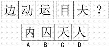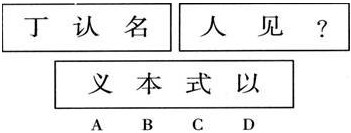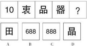 解析:本题目考察求异。考察求同必考察求异;前面一组图形中第一个与第二个图形不同元素是:“之”“云”,这两个元素组合后正好是第三个图形;后面一组图形,前面两个图形的不同元素是“口”“人”,组合成第三个图形,因此选B;