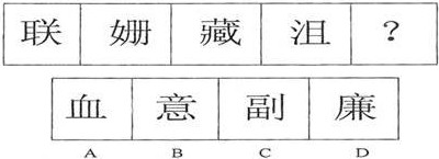 解析:本题目考察汉字的笔画。前面一组图形笔画数分别是:2、4、6;后面一组图形笔画数:2、4、?;因此选择一个图形具有6笔画即可