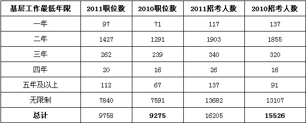 2010―2011年国家公务员考试之基层工作经历要求分析