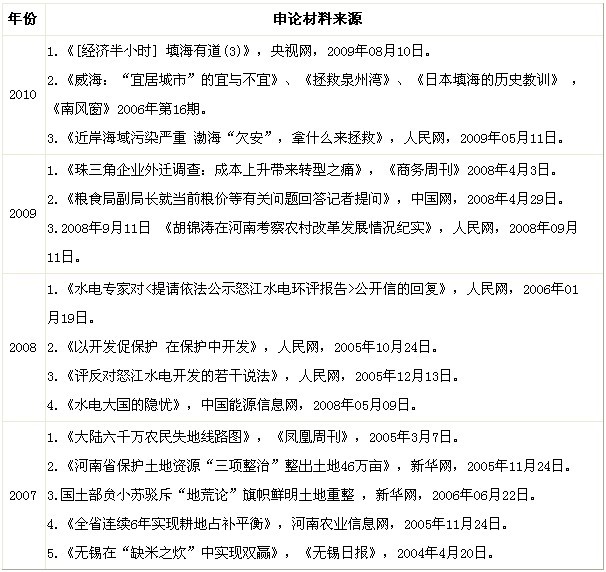 考生若想打破这种申论写作水平,就需要在考试外下功夫,平时多关注时政新闻,了解国策国情。申论所给定的材料不是命题人的主观编造,而是来源于既有的社会现实、新闻报道、政府文件和相关社会科学研究成果,我们对近5年来中央、国家机关申论考试的材料来源进行了梳理,材料来源如下: