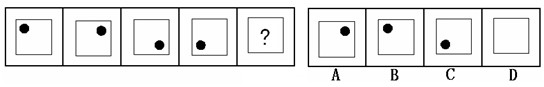(答案:B。黑点在正方形中顺时针移动。在第5个图形中,应该正好移动到左上角。)
