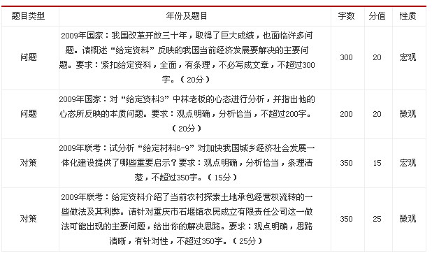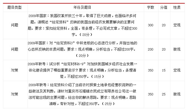 看过以上表格的人有可能会问什么是宏观的题目,什么是微观的题目。对于这两类题型不用定义,看具体的题目就知道了。宏观的题目就是给定很少的字数写一个很庞大的话题或内容;微观的题目则是针对具体、个别性的问题来提问的题目。