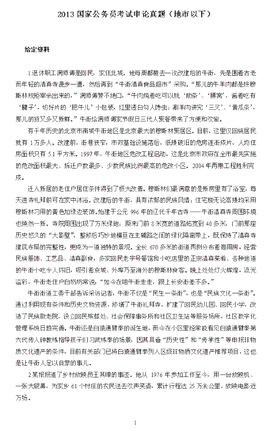 摘要 【环球网校】国家公务员考试频道2013年国家公务员申论考试真题(地市以下)