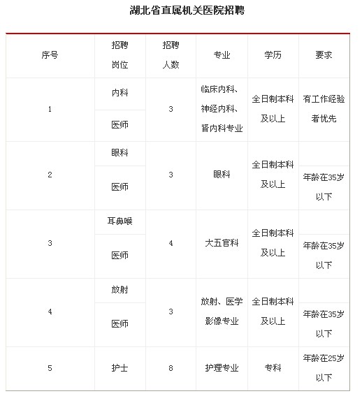 湖北省直属机关医院2013年校园招聘简章(招21人)