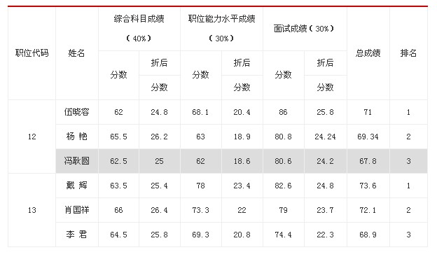 2012年湖北省商务厅公务员面试及综合成绩公告