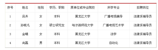 黑龙江省司法厅所属院校招聘拟聘用人员公示