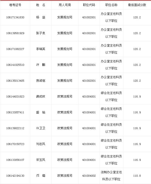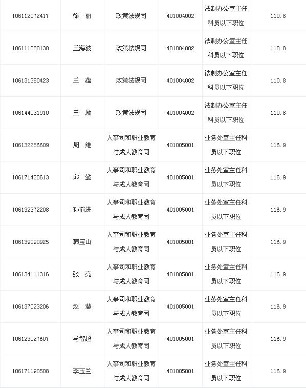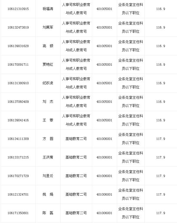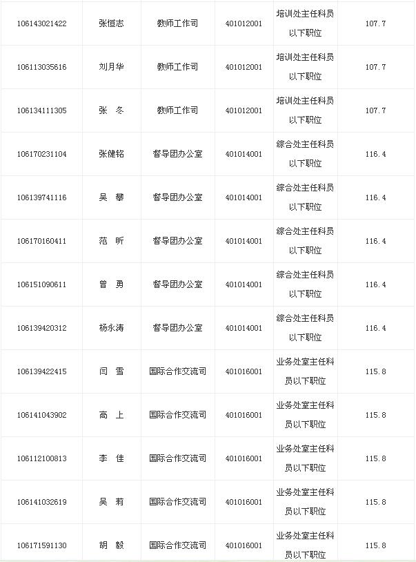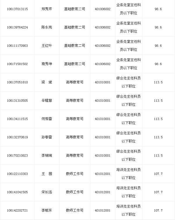 2013年教育部考试录用公务员面试名单