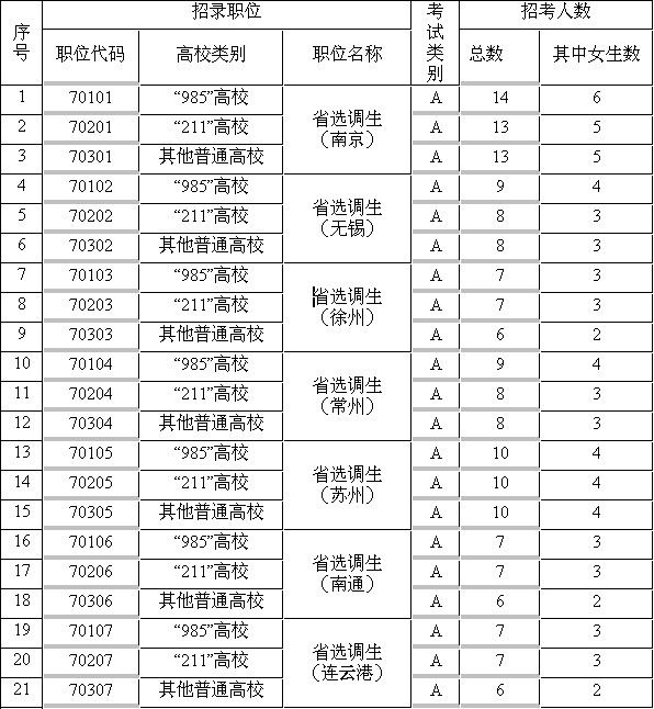 摘要 【环球网校】国家公务员考试频道2013年江苏省选调生职位简介表