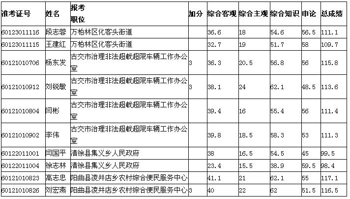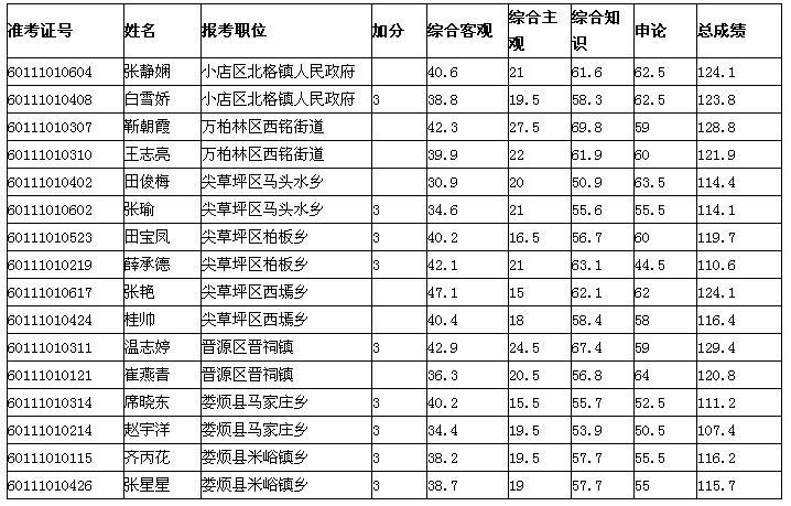 太原市2012年考录乡镇公务员笔试成绩及面试公告
