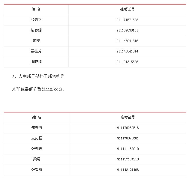 公共科目笔试成绩前5名的考生中,1人因自身原因自愿放弃面试资格,按分数从高到低顺序递补1名考生进入面试名单。本职位最低分数线112.20分。