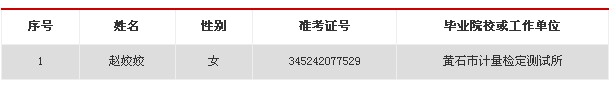 根据中共中央组织部、人力资源和社会保障部、国家公务员局关于中央机关及其直属机构2012年度考试录用公务员有关工作要求,经过笔试、面试、体检、考察等程序,湖北省国家税务局系统拟补录赵姣姣同志为公务员,现将补录用人员名单予以公示(考生暂缓录用的原因是体检时怀孕,暂停了部分体检项目)。