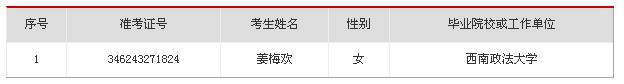 根据中共中央组织部、人力资源和社会保障部、国家公务员局关于中央机关及其直属机构2012年度考试录用公务员有关工作要求,经过笔试、面试、体检、考察等程序,湖南省国家税务局系统拟补录姜梅欢同志为公务员,现将拟录用人员名单予以公示(考生暂缓录用的原因为体检时怀孕,暂停了部分体检项目)。