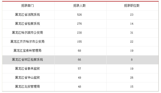 2013年黑龙江省公务员共招录2688个职位,相比去年同期增加270个职位;共招录5023人,比去年增加了457人。包括4637名公务员,386名参照公务员法管理单位工作人员,5名招录人数与去年基本持平。其中省直(含垂直管理单位)2951人;市(地)1016人;县(市)721人;乡(镇)335人。省直(含垂直管理单位)招录人数最多,占总招录人数的58.75%,为本次招录大户。