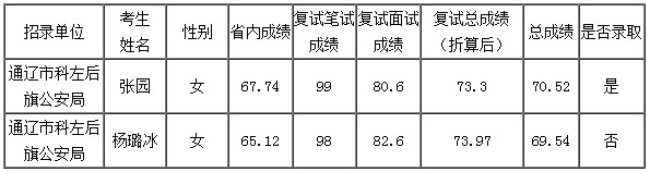 根据《内蒙古自治区2012年基层政法机关定向招录培养公务员招考简章》,经过中国人民公安大学复试,现对参加该校硕士研究生复试人员的复试结果予以公示。