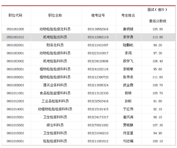 因部分进入我局面试名单人员自愿放弃面试资格,根据公务员招考有关规定,按照公共科目笔试成绩从高到低的顺序,现将我局2013年度公务员考录面试递补人员名单公告如下: