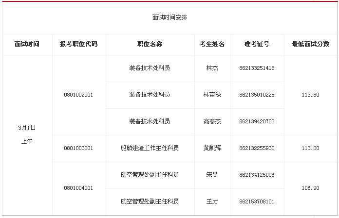 请考生本人于2月28日下午14:00-15:00到国家海洋局机关大楼东配楼四层404房间进行面试资格复审。