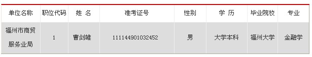 福州市商贸服务业局2012年秋季拟录人员名单