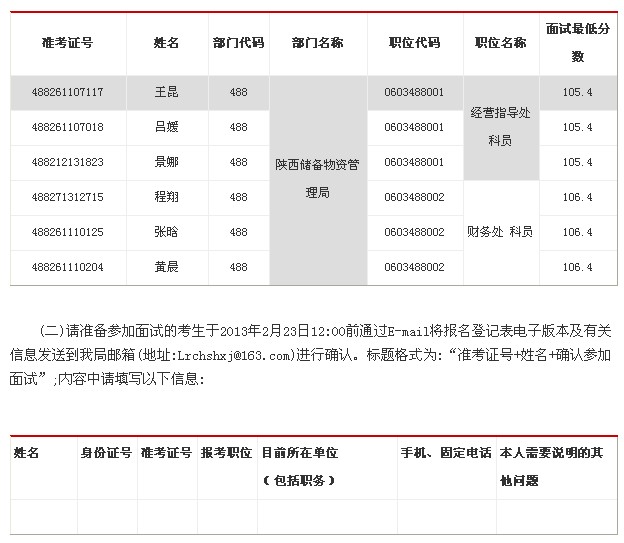 根据中央组织部、人力资源和社会保障部、国家公务员局有关要求,现就陕西储备物资管理局2013年度公务员录用面试等相关事宜公告如下: