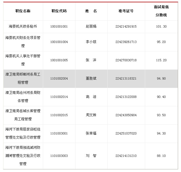 2013年水利部海河水利委员会公务员面试递补公告