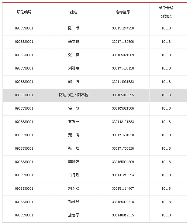 注:首次进入面试的考生刘世琢放弃面试资格,因此按照笔试成绩由高到低的顺序进行递补唐建厚进入面试。