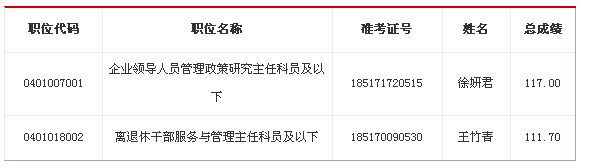 我委部分进入面试人选不能参加面试,根据有关规定,按照有关职位考生公共科目笔试总成绩顺序,递补以下考生为面试人选: