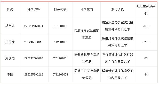 上述四个职位的面试时间均为2月28日,请考生按照在国家公务员局网站上发布的《民航中南地区管理局2013年度考试录用公务员面试公告》的要求,准备相关材料并按时参加面试。