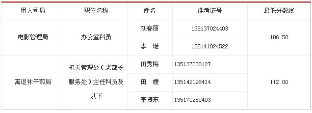 根据公务员考录工作的有关规定,因考生个人原因放弃面试资格的个别职位,经国家公务员局同意,按照公共科目笔试成绩由高到低的顺序进行递补。名单如下: