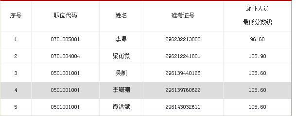 因部分考生由于个人原因放弃面试资格,根据公务员考试录用工作规定,我局对有关职位进行了人员递补,具体名单如下: