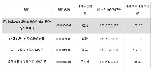 2013年公务员面试递补公告:四川出入境检验检疫局