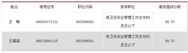 因个别考生放弃面试资格,根据中央机关及其直属机构公务员考试录用工作有关规定,在报考该职位的公共科目笔试成绩合格的考生中,按照成绩由高到低的顺序进行递补。现递补2名考生参加我局2013年招录公务员面试,有关情况公告如下: