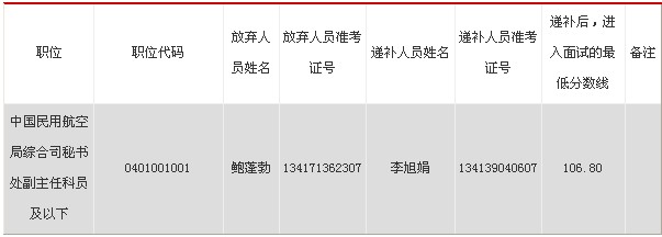 请递补考生按照中国民用航空局局机关在国家公务员网站上发布的面试公告作好面试准备。