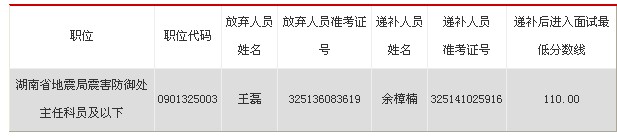 2013年国家公务员面试递补公告:湖南省地震局