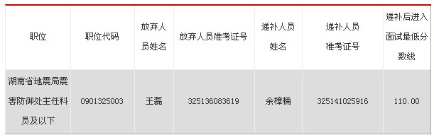 摘要 2013年国家公务员面试递补公告:湖南省地震局