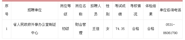 根据《关于2012年省属事业单位公开招聘工作人员有关问题的通知》(鲁人社发〔2012〕14号)等相关规定,按照岗位招聘计划和考试、考核体检结果,现对以下招聘单位拟聘用人员进行公示,公示期为7个工作日。公示期间,如对公示人选有异议,请及时向省事业单位公开招聘主管机关反映。