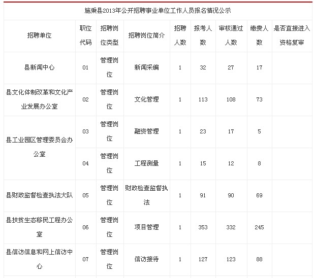 摘要 2013年贵州施秉县事业单位招聘报名公示