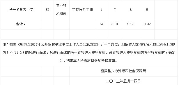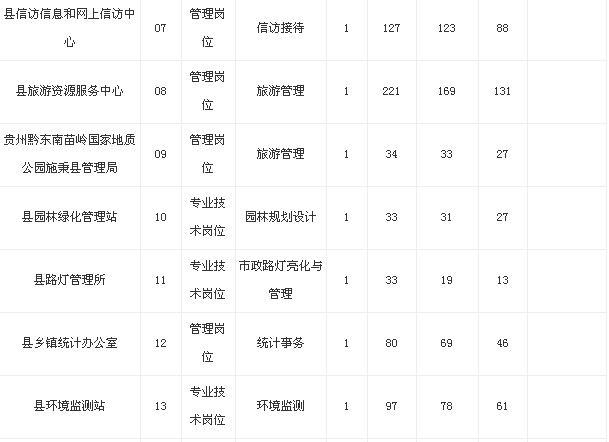 2013年贵州施秉县事业单位招聘报名公示