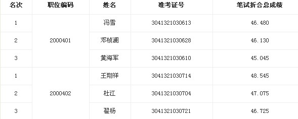 2013年四川省政府政务服务中心公务员面试资格复审名单如下: